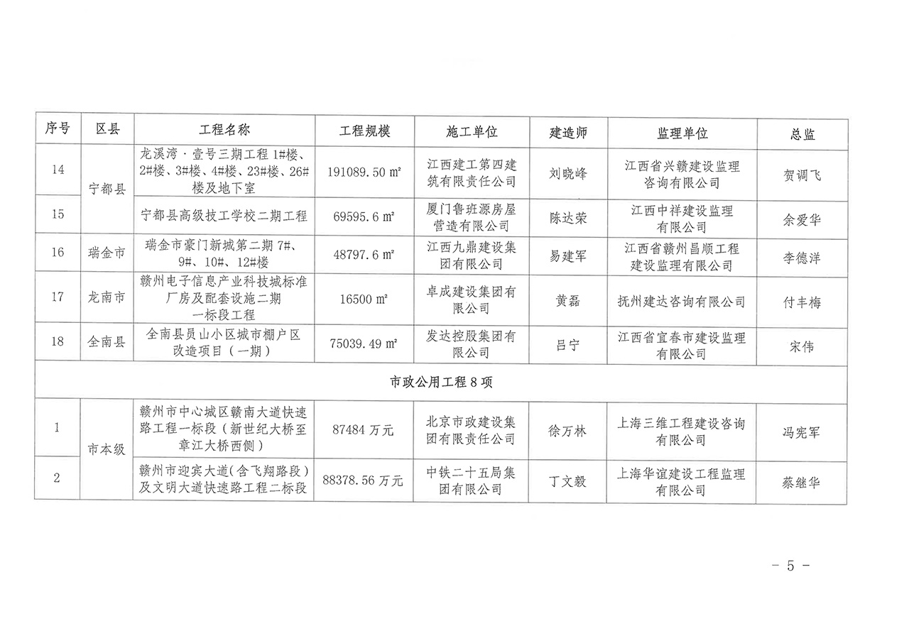 關于公布2021年度贛州市優質建設工程獎工程名單的通知